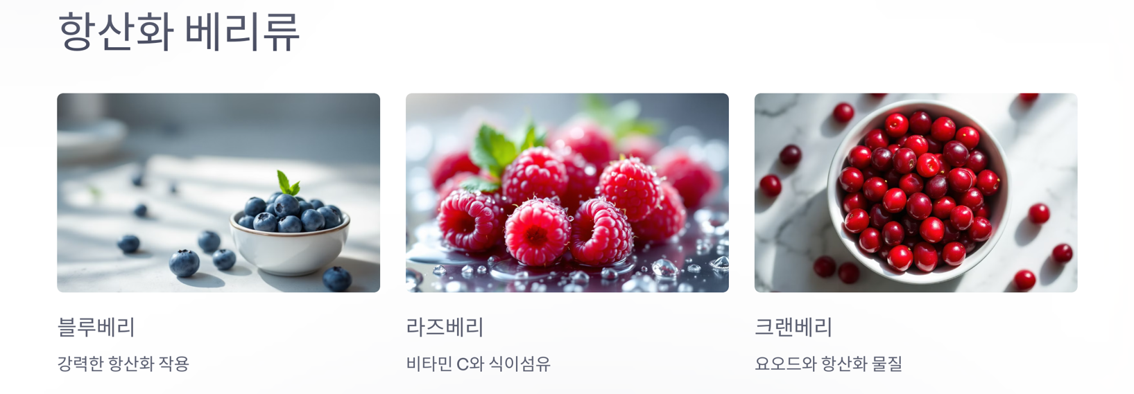 베리류는 신선한 상태로 먹어도 좋고, 스무디나 요거트에 넣어 먹어도 좋아요. 자연 그대로의 단맛을 즐기면서 갑상선 건강도 챙겨보세요!