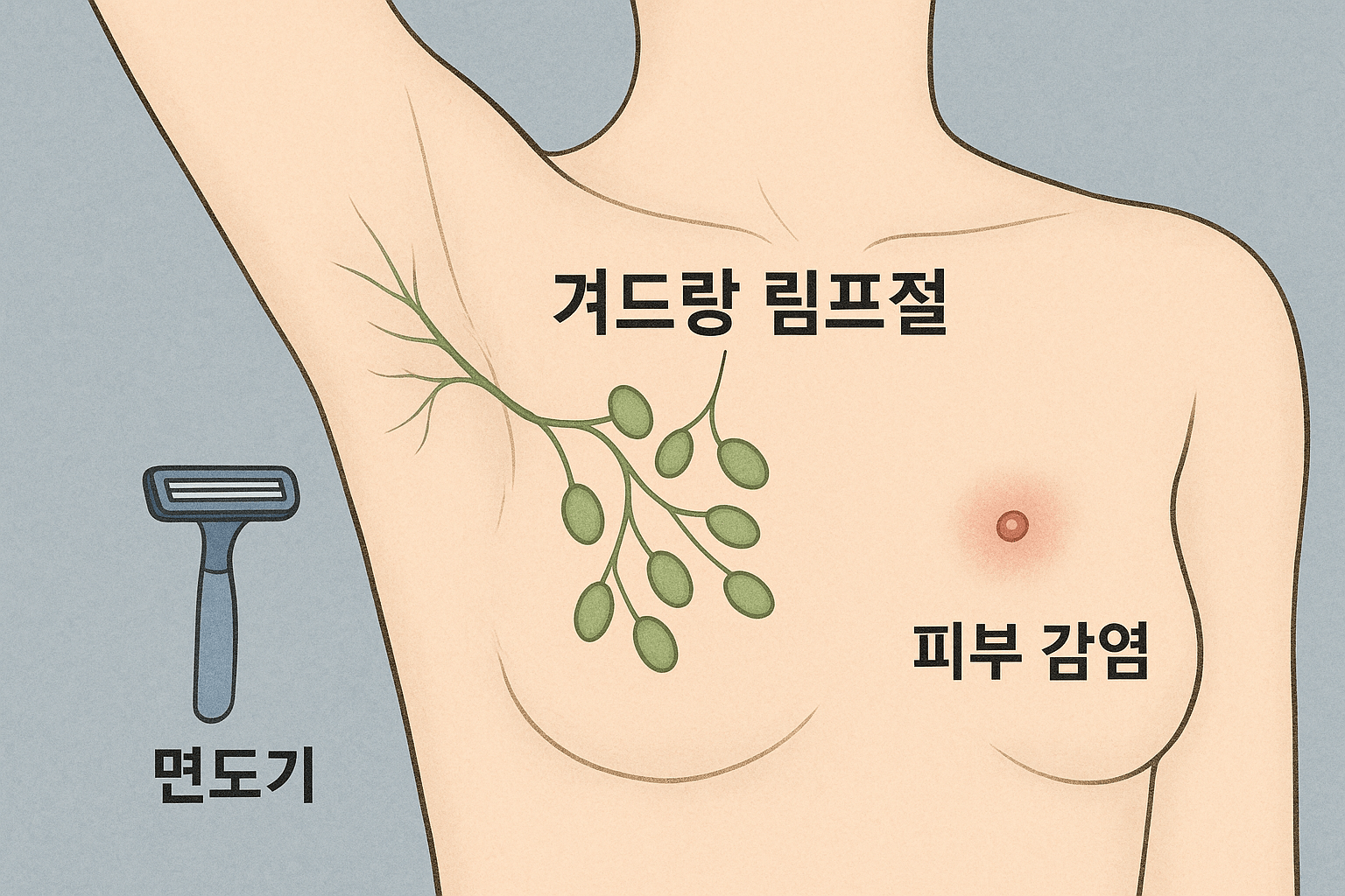 - 초기 대처: 혹시 모를 피부 감염 방지를 위해 청결을 유지하고, 겨드랑이에 자극을 주는 행동(꽉 끼는 옷, 과도한 제모)을 피하는 것이 좋습니다.