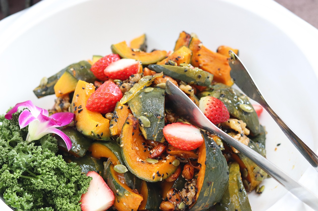 - 단호박 샐러드: 찐 단호박을 으깬 뒤 양파, 파프리카, 호박씨, 건포도 등과 함께 플레인 요거트, 올리브오일, 식초로 버무려 만듭니다. 영양 공급과 포만감이 뛰어나며, 식이섬유와 비타민 섭취에 효과적입니다.