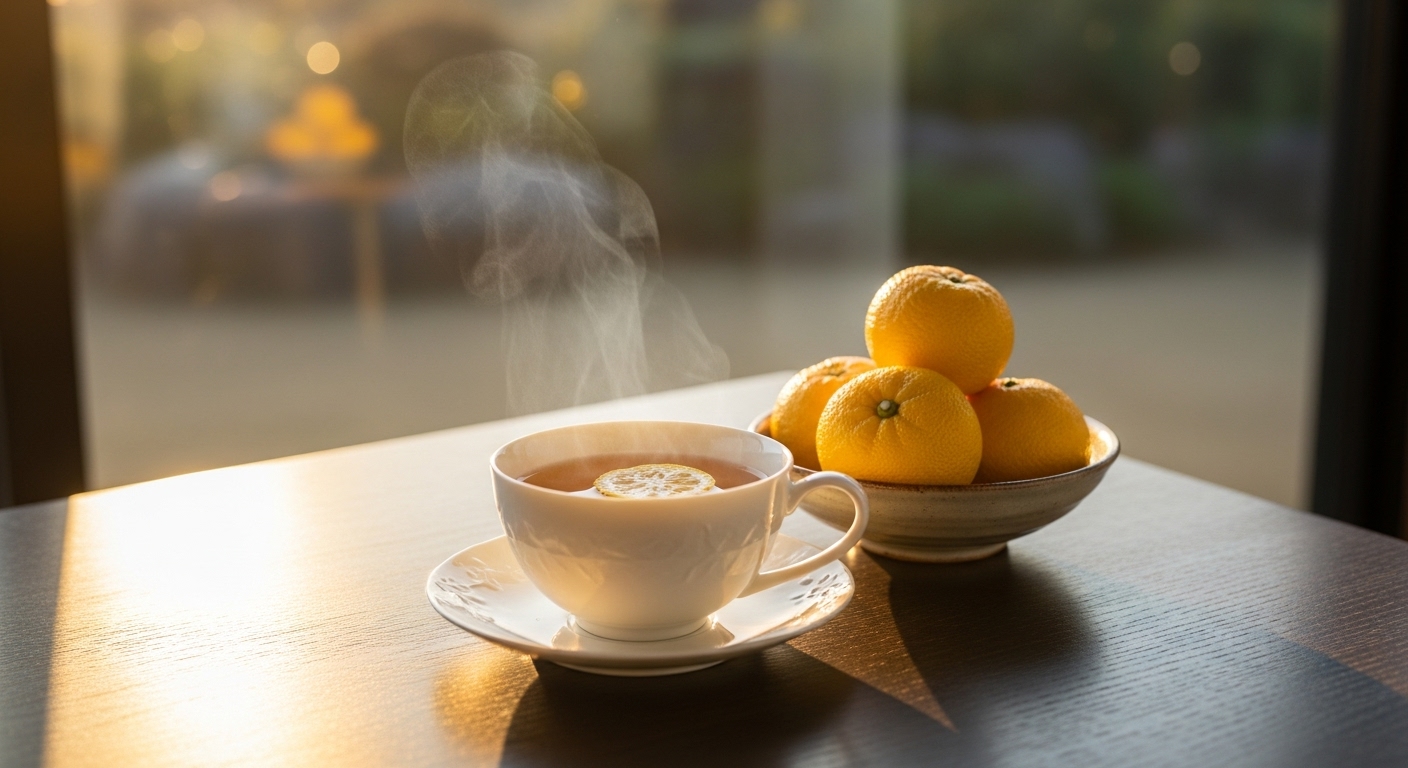 - 1순위 추천: 생강차, 유자차 (항염 효과 및 비타민 C 풍부)