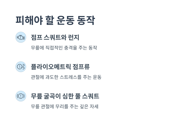 무릎 통증이 있는 분들이 피해야 할 운동도 명확히 알아두는 게 중요해요. 아무리 유행하는 동작이라도 무릎에 직접적인 스트레스를 준다면 되레 악화될 수 있거든요.