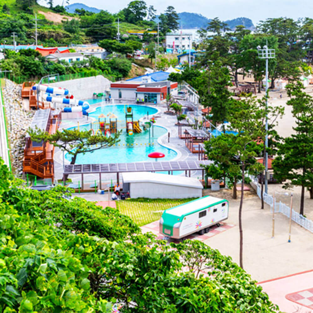 - ⭐ 추천 포인트: 고운 모래사장, 온순한 파도, 실내 워터파크 동시 이용 가능, 평상 대여 후 음식 섭취 가능