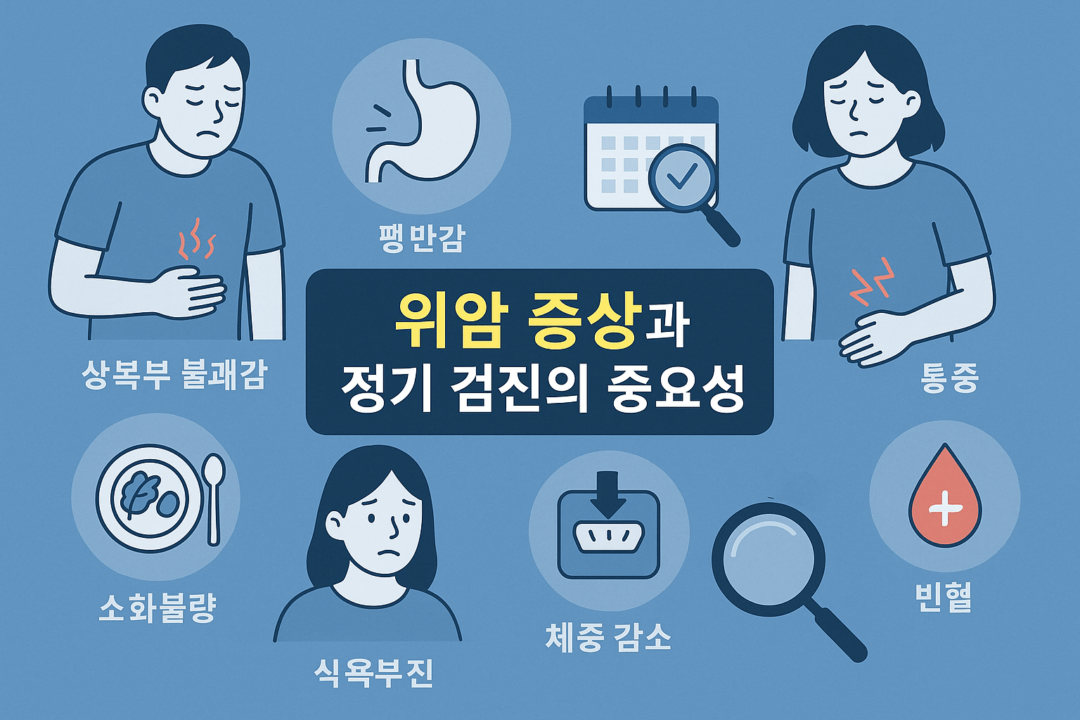 위암 초기증상: 놓치면 후회할 조기 신호들 (상복부 불쾌감, 팽만감, 통증, 소화불량, 식욕부진, 체중 감소 및 빈혈, 속쓰림)
