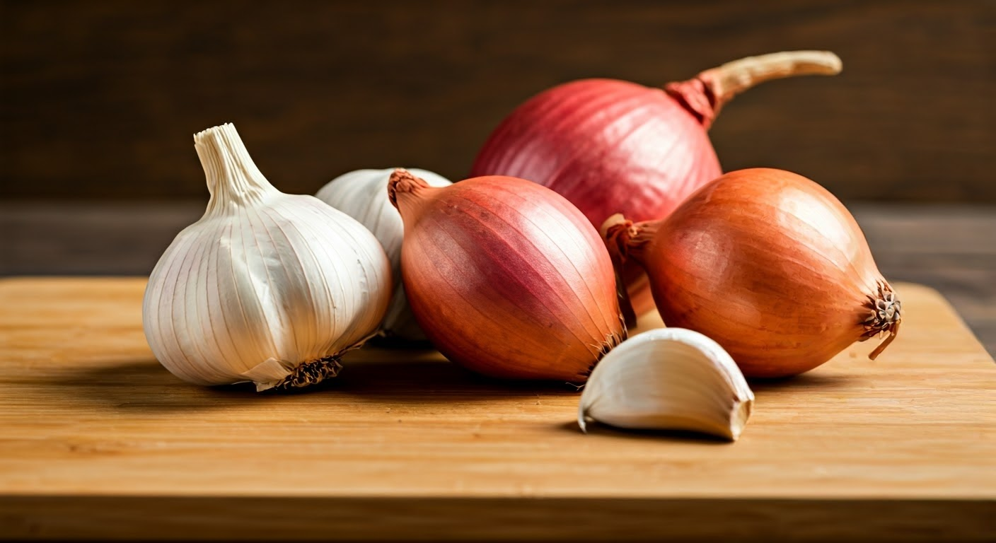 향신 채소 양파, 마늘, 강황, 생강 케르세틴(양파), 알리신(마늘), 커큐민(강황), 진저롤/쇼가올(생강) - 혈관 건강, 살균, 항산화