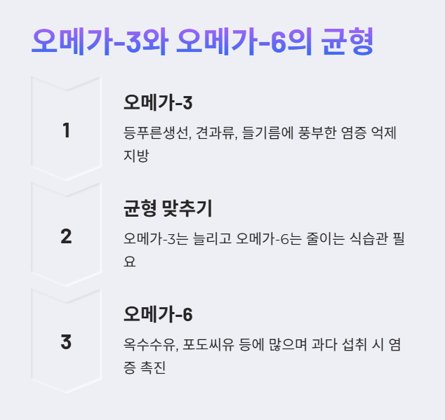 4. 오메가 지방산 균형 맞추기: 오메가-3는 늘리고, 오메가-6는 줄이기.