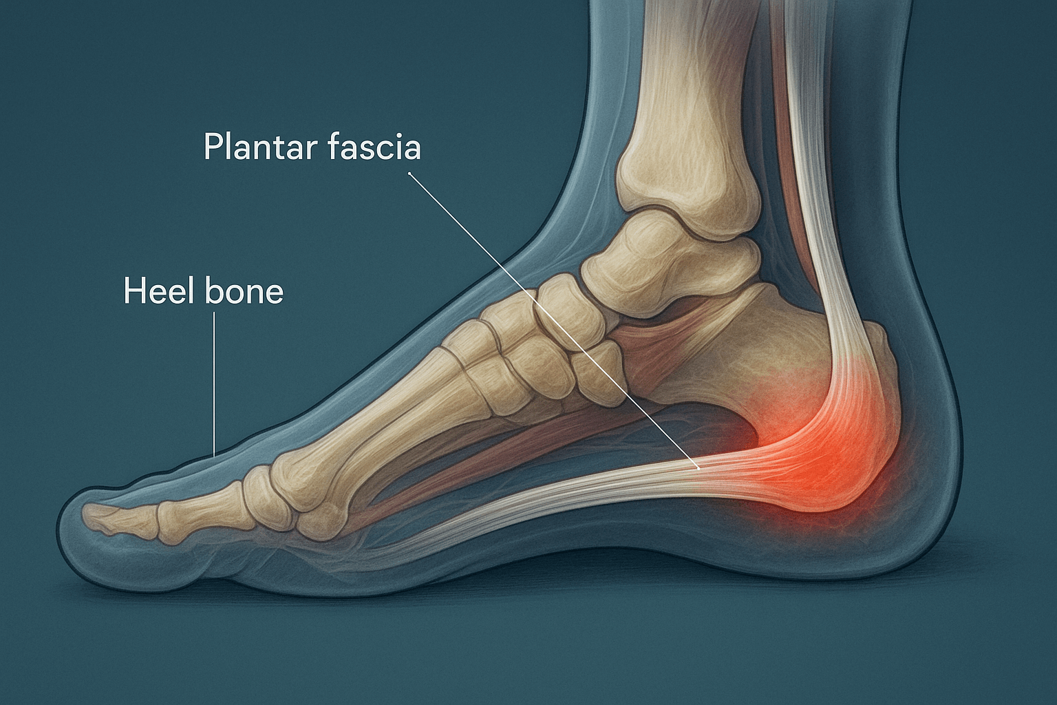 - 족저근막염 정의: 발뒤꿈치에서 발바닥 앞쪽까지 이어진 족저근막에 염증이 생기는 질환. 아침 첫걸음 통증이 특징입니다.