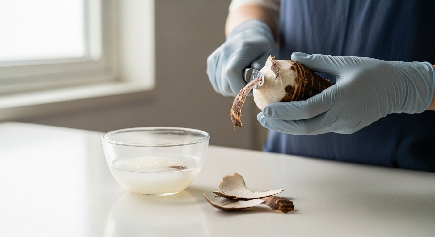 ✔️ 건강하게 즐기기: 껍질 벗길 때 장갑 착용, 쌀뜨물/식초물에 담그기, 완전히 익히기 과정을 거치면 안전하게 즐길 수 있습니다.