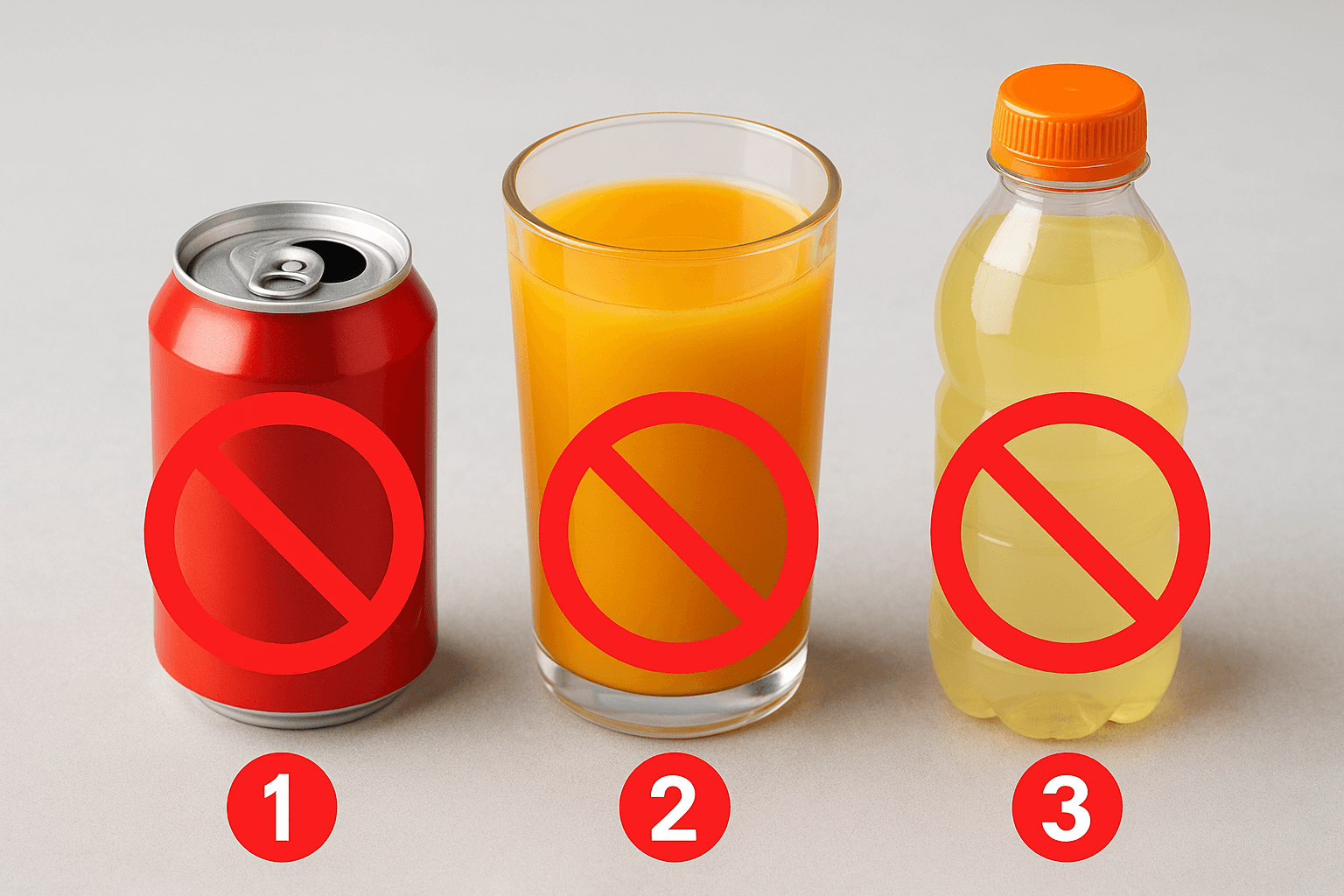 - 탄산음료, 과일주스, 액상과당 첨가 음료: 과당은 간에서 대사되면서 요산을 엄청 빠르게 만든대요. 하루 한두 잔의 달달한 음료만으로도 통풍 위험이 기하급수적으로 증가한다고 합니다. 정말 무섭죠?