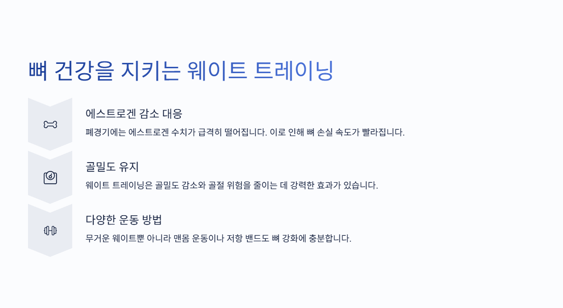 폐경기, 웨이트 트레이닝, 뼈 건강, 골밀도, 근육량, 신진대사, 폐경기 운동, 중년 여성 건강, 저항 운동, 프리 웨이트, 정신 건강, 수면 건강, 낙상 예방, 운동 루틴, 중년기 웰빙
