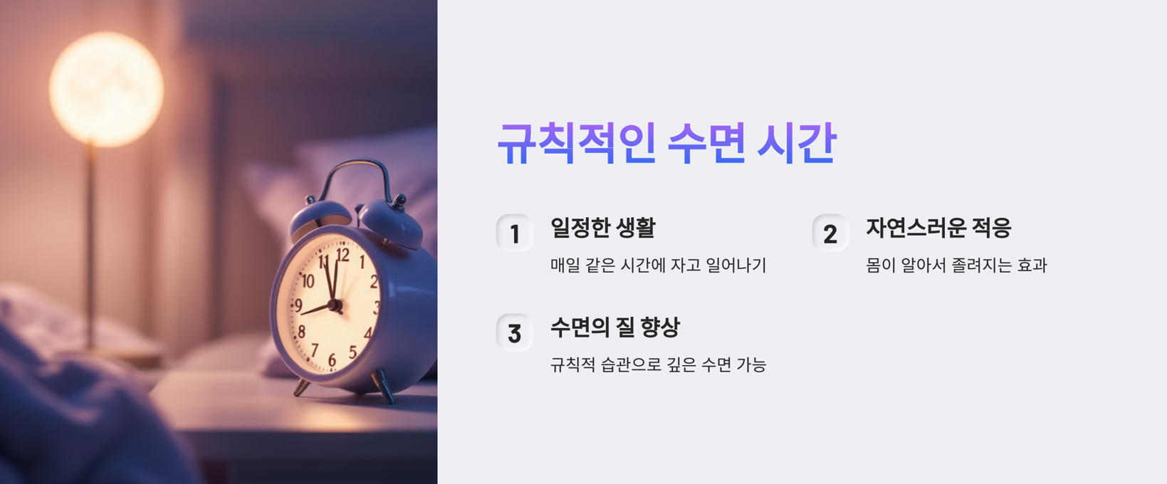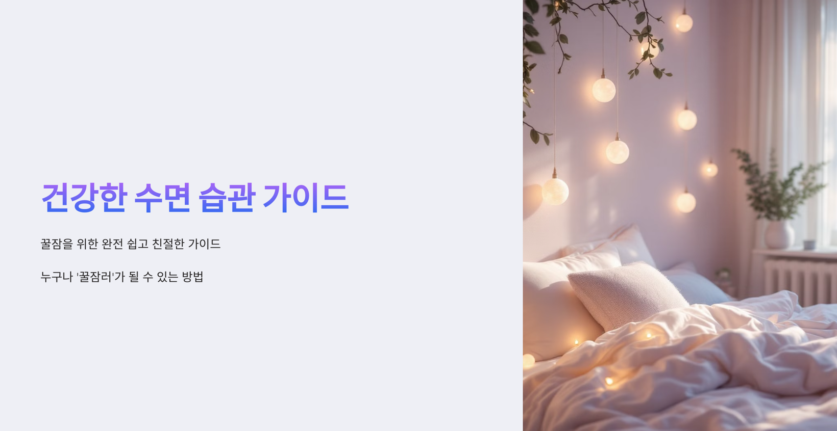 하지만 걱정 마십시오! 오늘부터 따라만 하면 누구나 '꿀잠러'가 될 수 있는 건강한 수면 습관을 정말 쉽고 친절하게 알려드리겠습니다! 🚀