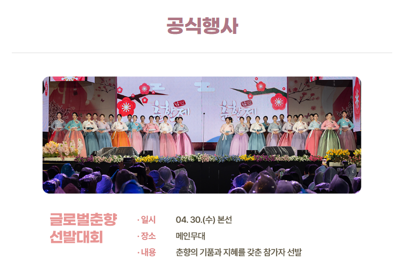 | 주요 프로그램 | 전국 춘향 선발대회, 대동 길놀이, 각종 공연 행사 |