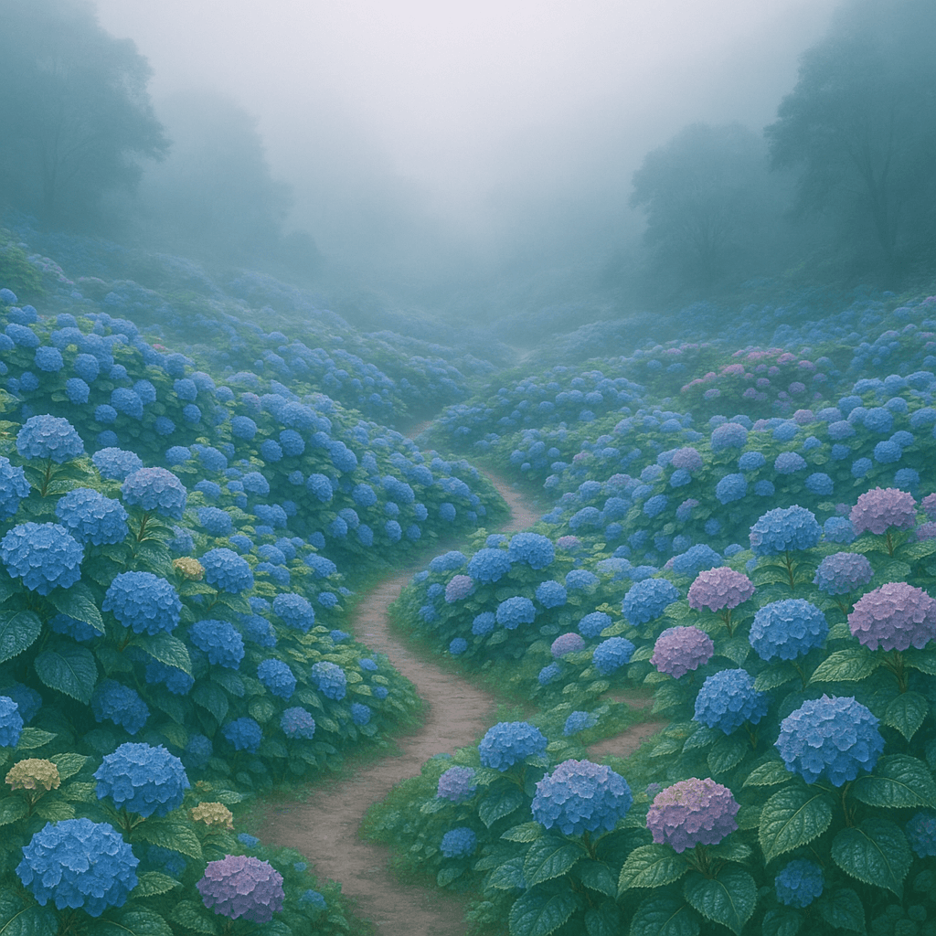 - ⭐ 추천 포인트: 아침 안개 속 몽환적인 수국 풍경 🌫️
